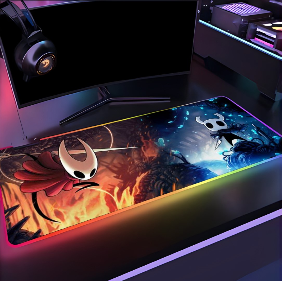 ¡Conquista tu espacio de juego con esta alfombrilla RGB Hollow Knight XXL!