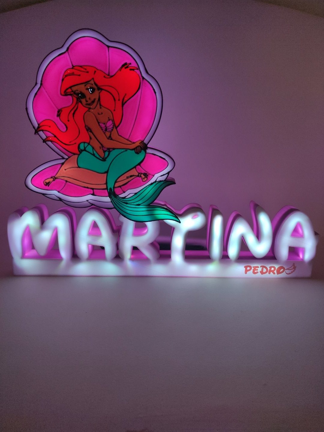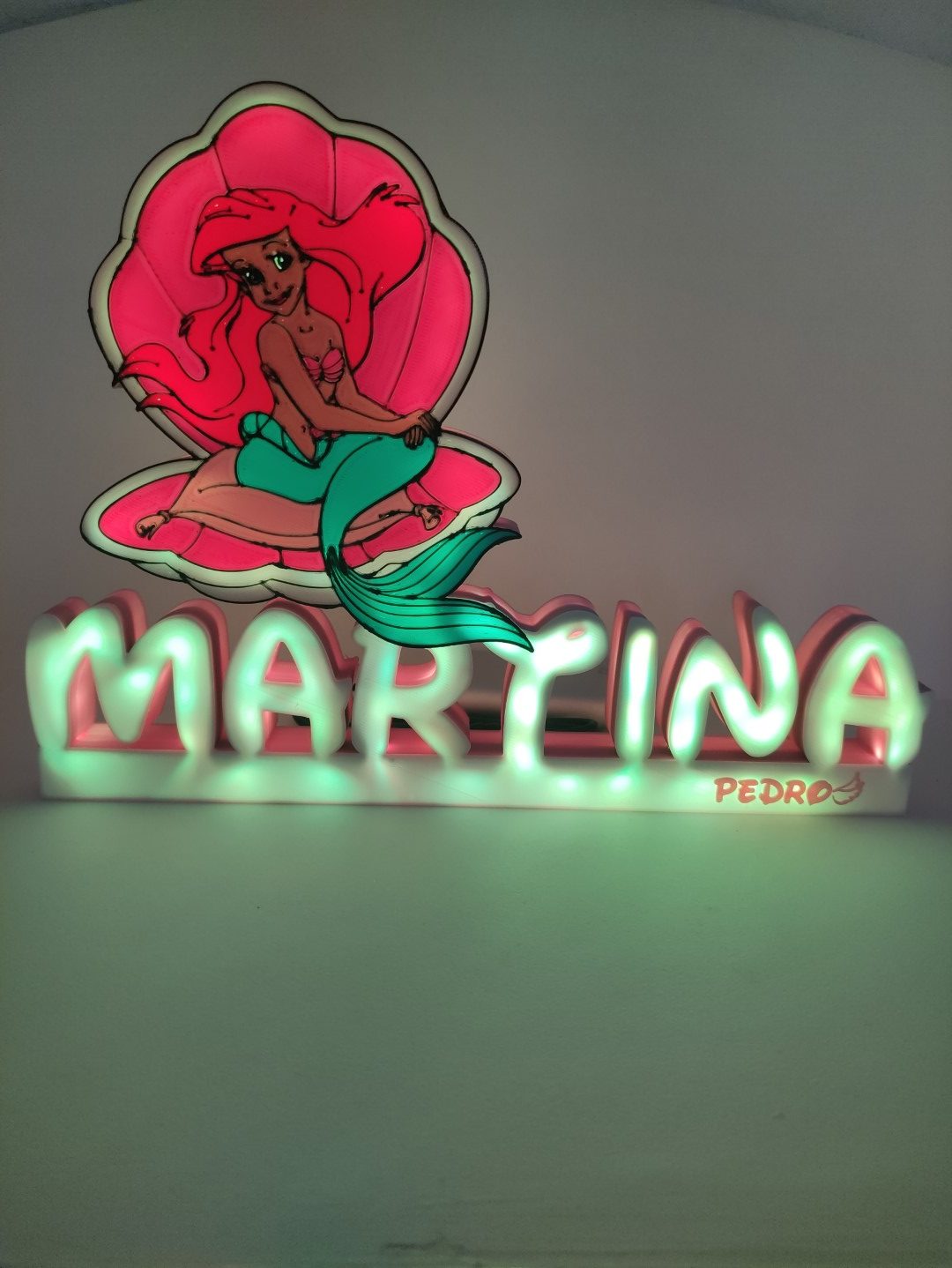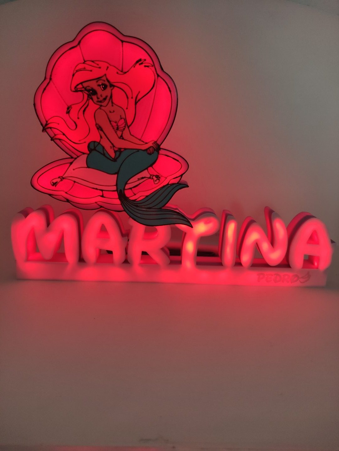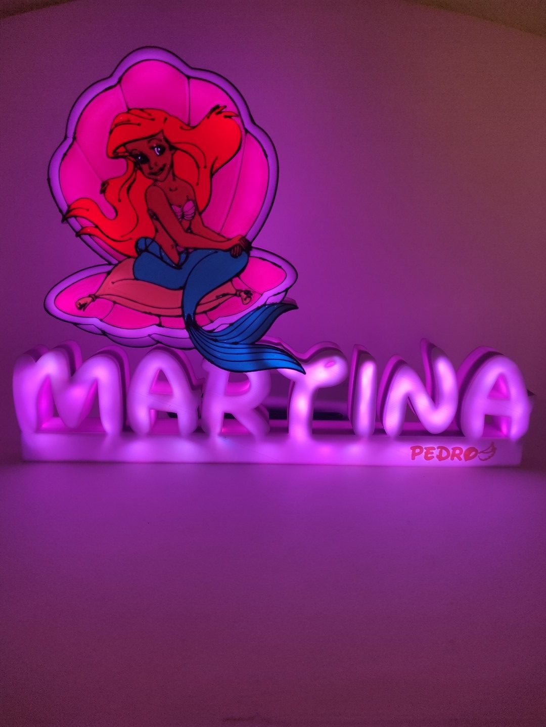 Sumérgete en la belleza y la magia del océano con nuestra Lámpara La Sirenita impresa en 3D. Esta obra maestra de diseño te permite personalizarla con tu nombre, haciéndola única y especial. Ilumina tus noches con 15 colores de LEDs diferentes que puedes controlar de manera sencilla con el mando a distancia incluido.